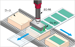 超小型EC4軸でリレー搬送用トレーを持ち上げます。