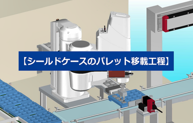 スカラロボットでワークのパレット移載を行います。