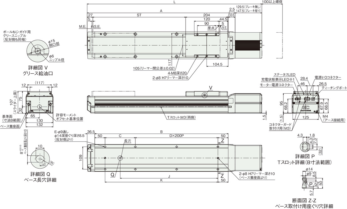 | L | ブレーキ無し | 496.5 | 546.5 | 596.5 | 646.5 | 696.5 | 746.5 | 796.5 | 846.5 | 896.5 | 946.5 | 996.5 |