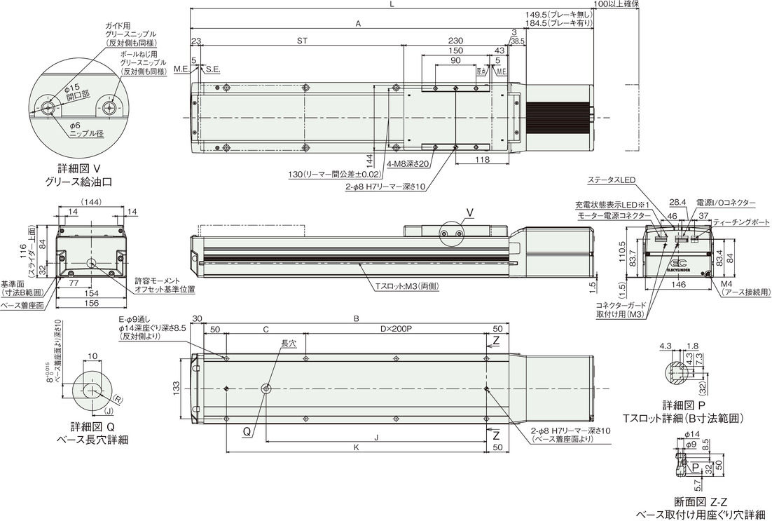 | ベース | 専用アルミ押出材(A6063SS-T6相当) 黒色アルマイト処理 |
