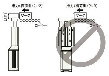 (※2) コンベアーなどによる推力は、許容荷重250N以下で使用してください。