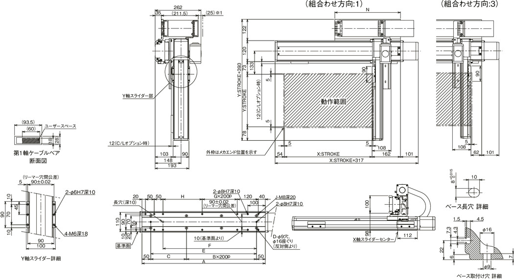 (注2) 自立ケーブル仕様はX軸の最大ストロークが1000mmになります。