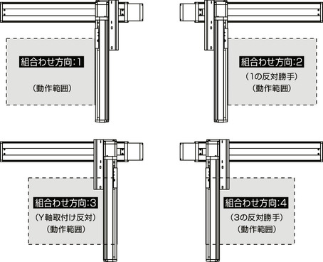 (注1) XY組合わせ方向は下図を参照ください。上記型式の①~⑧の内容は下表をご参照ください。