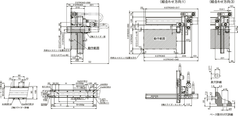 (注3) 自立ケーブル仕様はX軸の最大ストロークが1000mmになります。