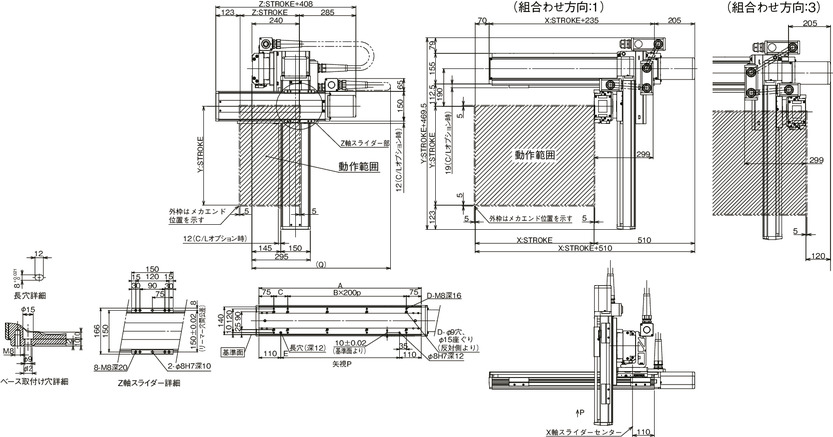 (注3) 自立ケーブル仕様はX軸の最大ストロークが1000mmになります。