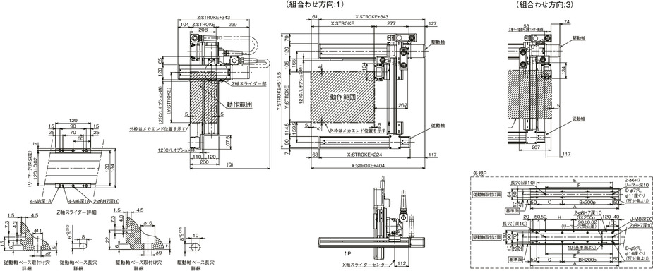 (注3) 自立ケーブル仕様はX軸の最大ストロークが1000mmになります。