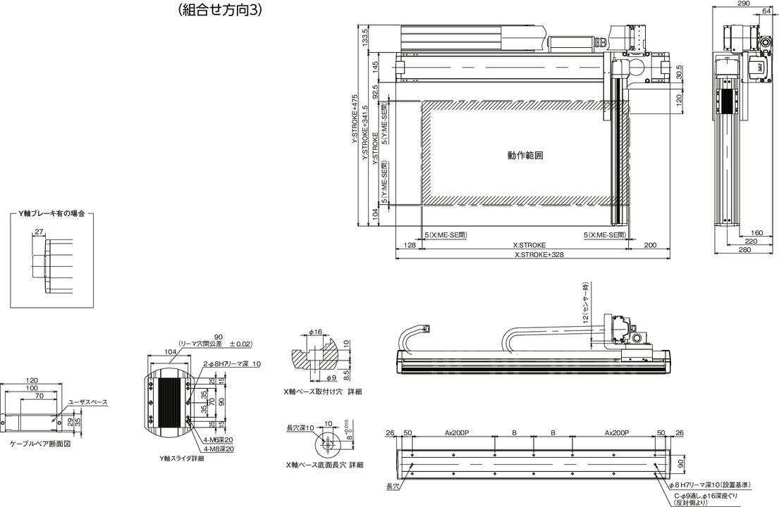ICSPA2-B1N□M-CT(ケーブルベア仕様)組合せ方向3