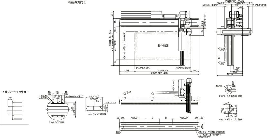 (注) ケーブルベア断面図の( )はYZ間のケーブルベア寸法です。