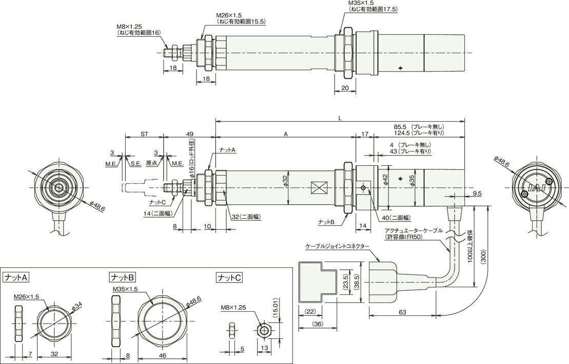 | L | ブレーキ無し | 234.5 | 284.5 | 334.5 | 384.5 |