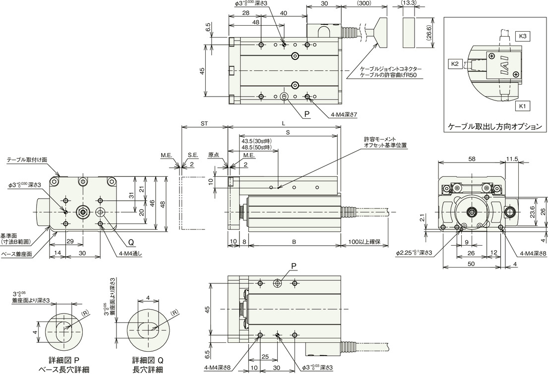 (注) 取付けボルト長にご注意ください。ボルトが長いと内部部品に干渉し、摺動異常や部品破損の可能性があります。