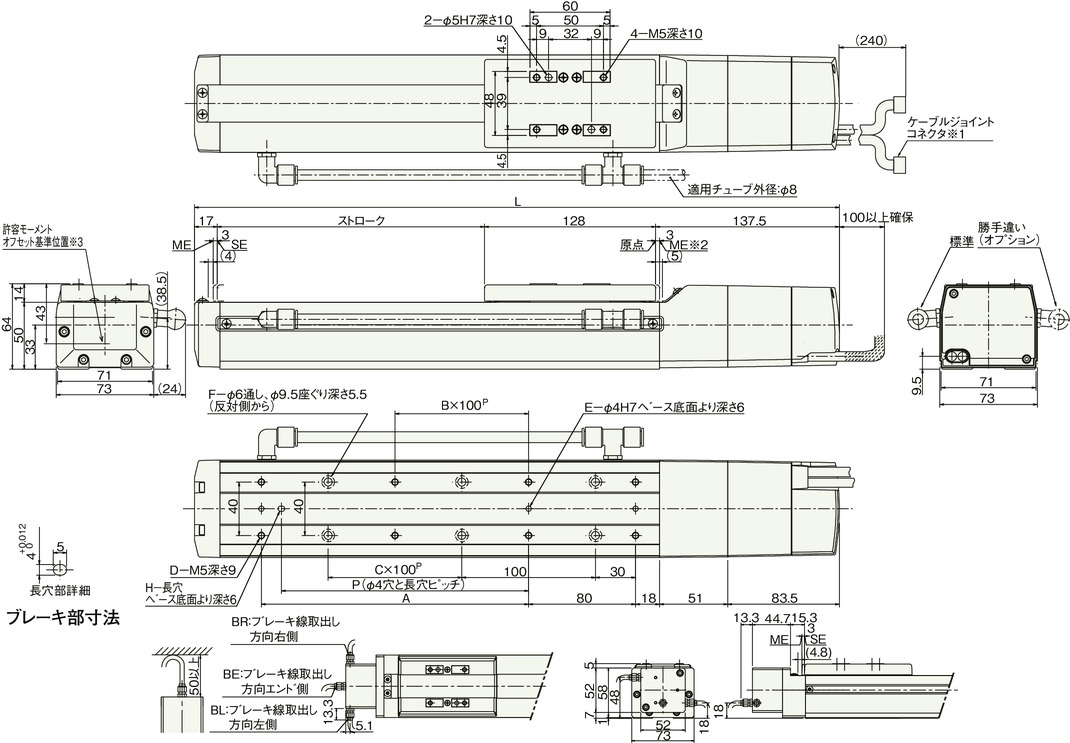 (注) ブレーキ有りは全長が43mm(配線エンド側取出は56.3mm)質量が0.6kg アップします。