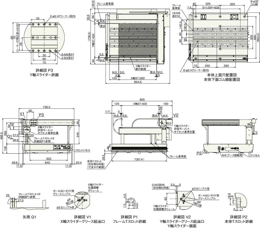 (注2) テーブル部とは、本体上面部のことです。X軸の可搬質量ではありません。